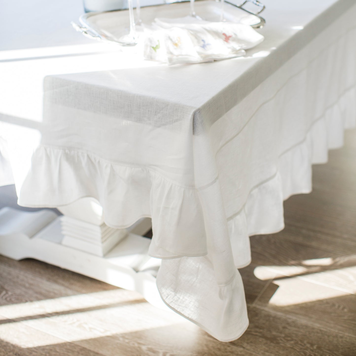 Nappe rectangulaire en lin avec volant