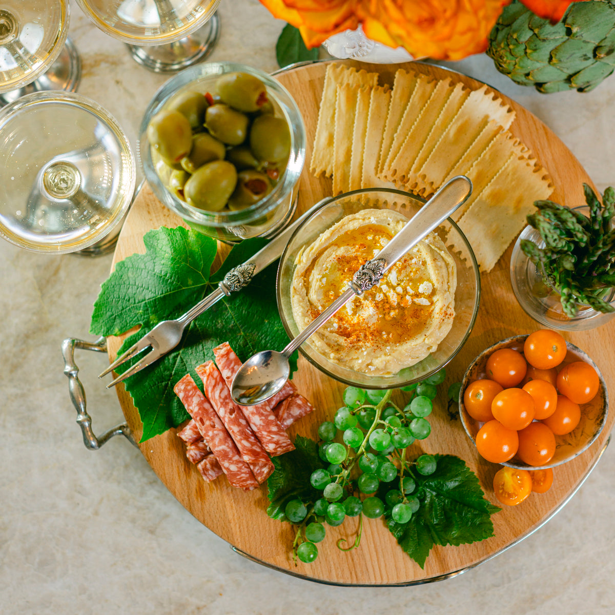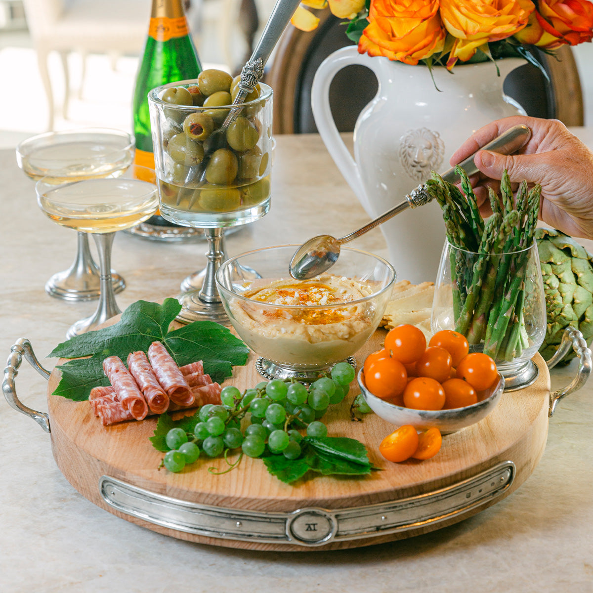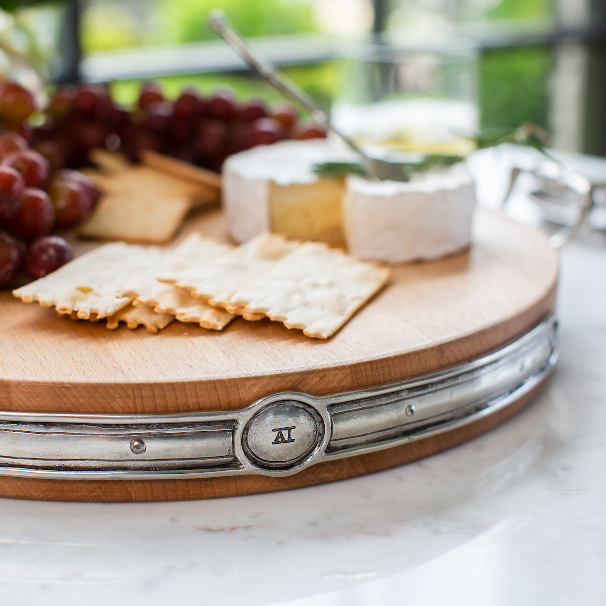 Nouveau! Dressez une table d'apéritif spectaculaire avec notre nouvelle planche à charcuterie en bois et étain. Le rebord et les poignées en étain en font la pièce de divertissement parfaite. Fabriqué à la main en Italie.