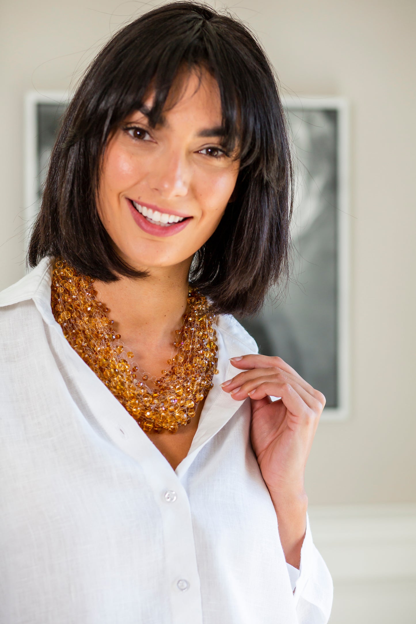 Faites une déclaration dans notre collier en grappe de perles de cristal ! Ce collier, composé de nombreux brins de perles de cristal enchaînées est le complément parfait à nos beaux vêtements en lin. Le collier est léger et se sent merveilleusement autour de votre cou.