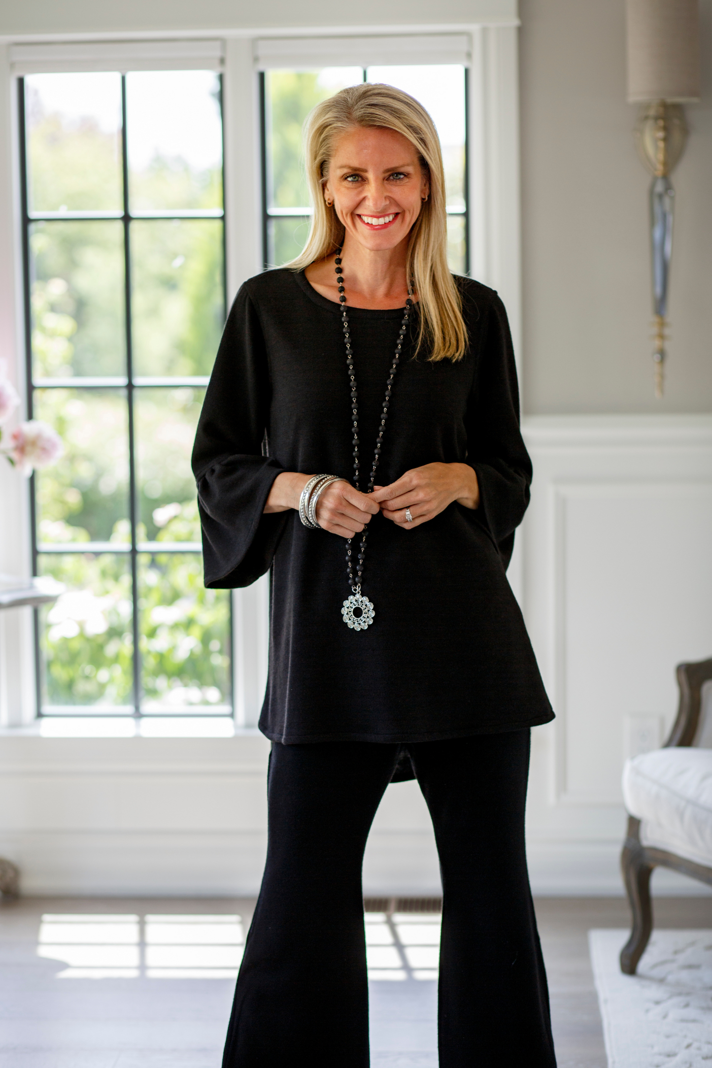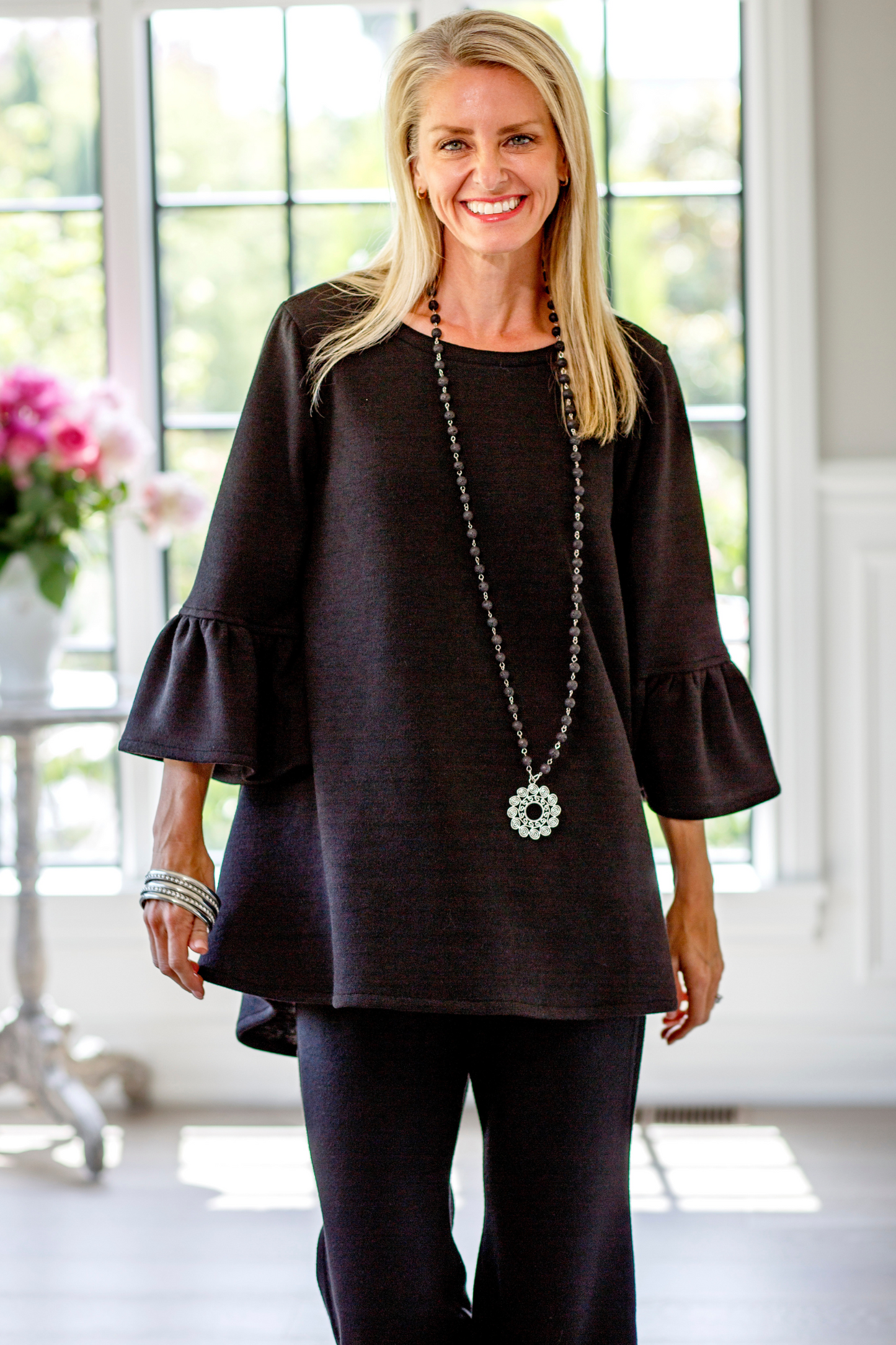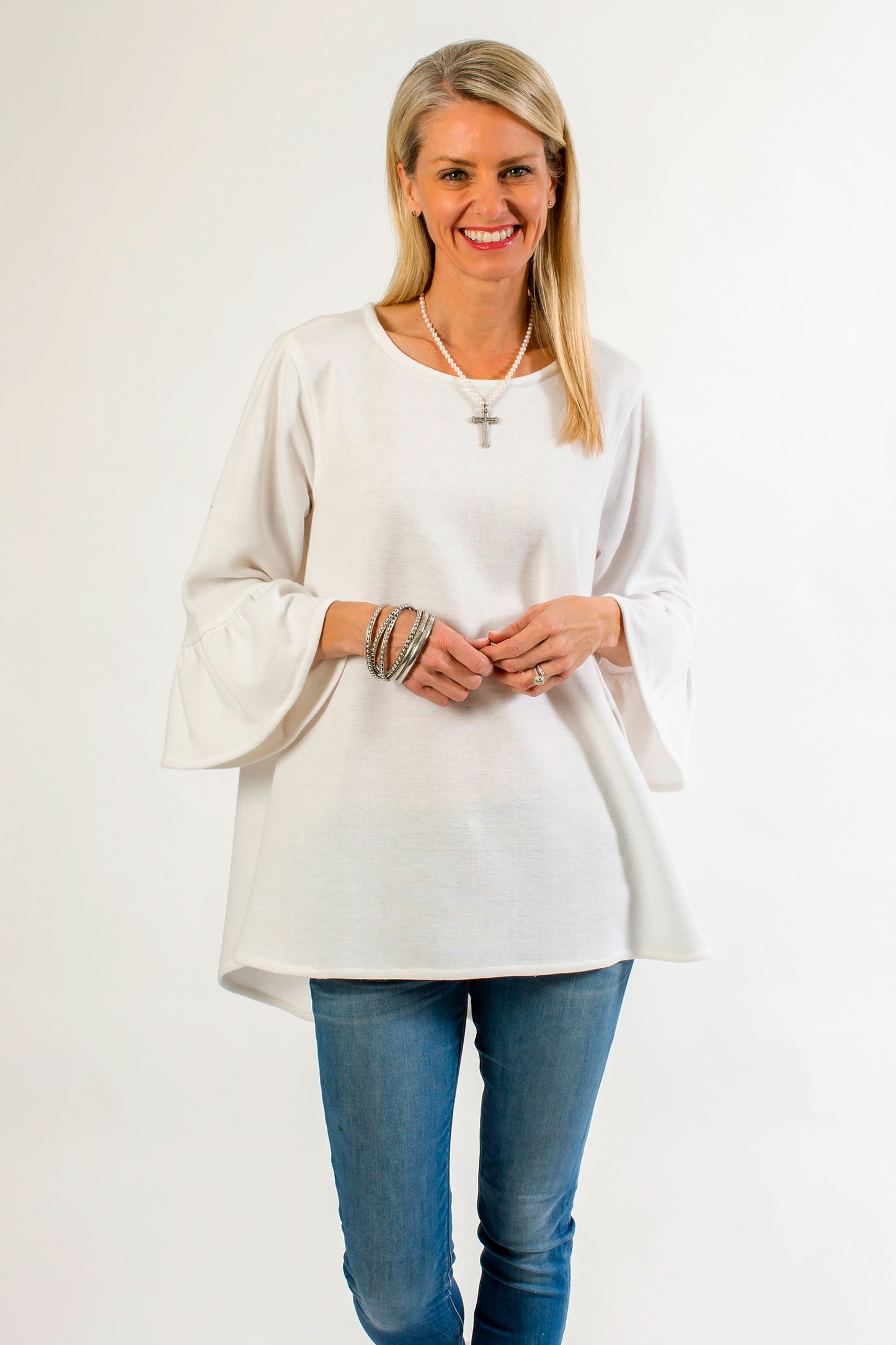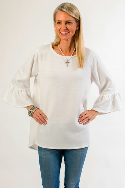 Notre haut Bella le plus vendu est maintenant disponible dans la collection Comfy ! Flatteur pour tous les types de corps avec sa conception hi-lo, sa longueur à la taille devant et plus longue dans le dos. Confectionné en jersey de laine luxueux, ce haut confortable présente des manches cloche 3/4 et un col ras du cou. Une coupe flatteuse pour toutes les tailles. Style et confort... quoi de mieux ?!
