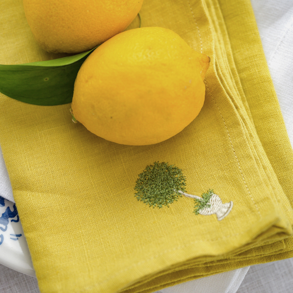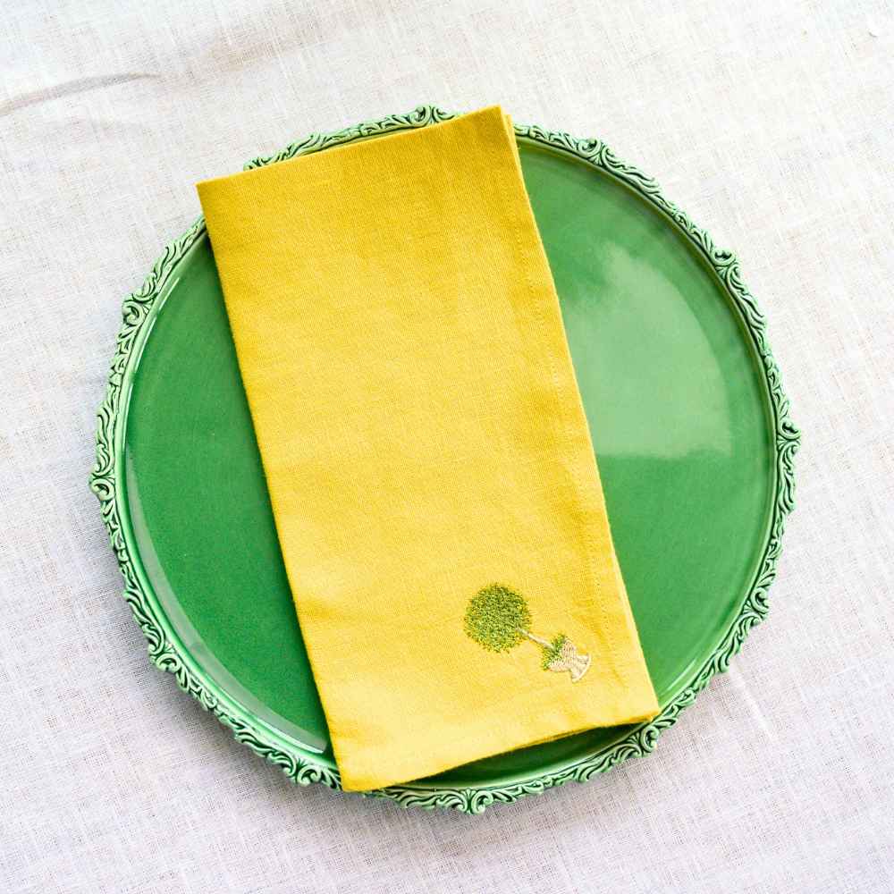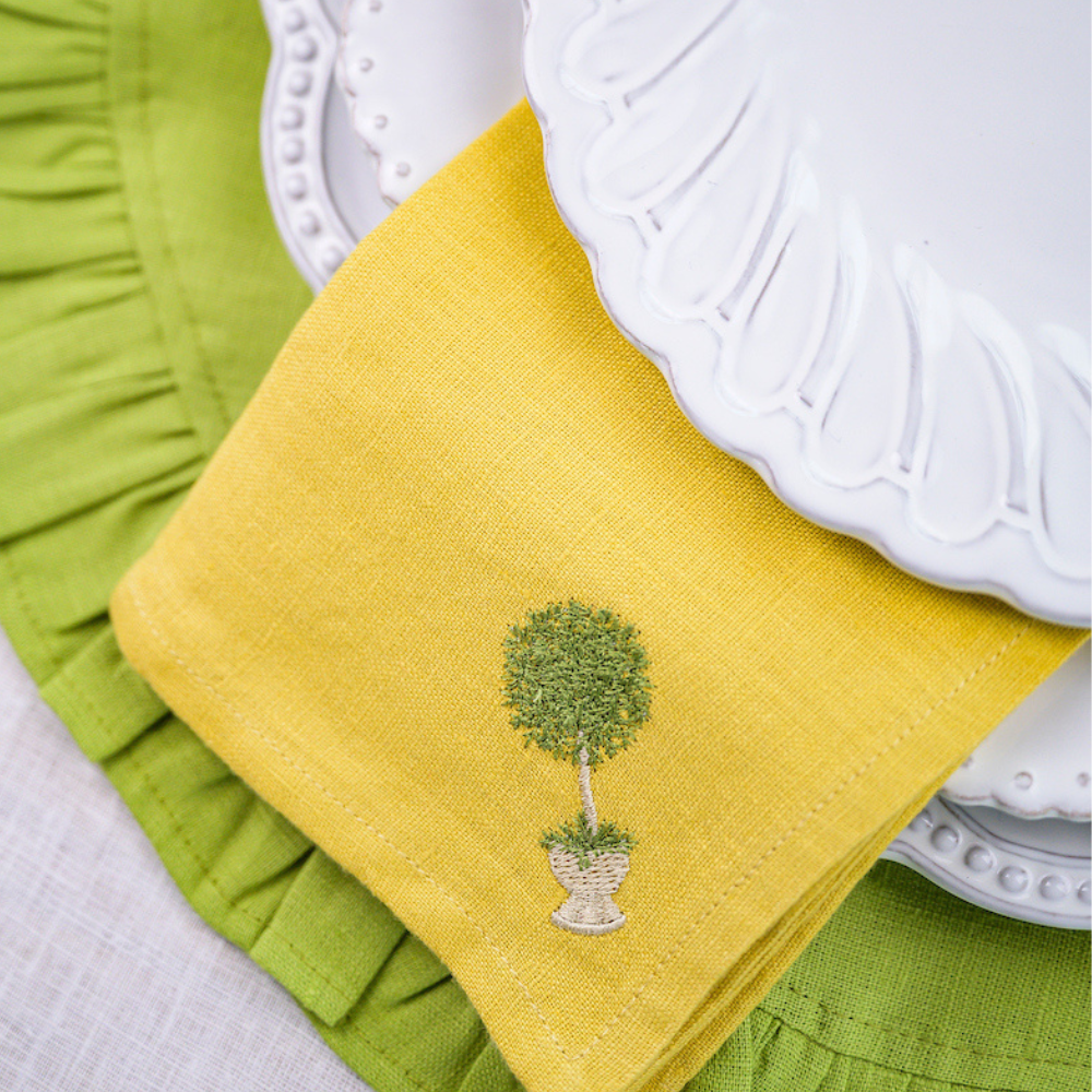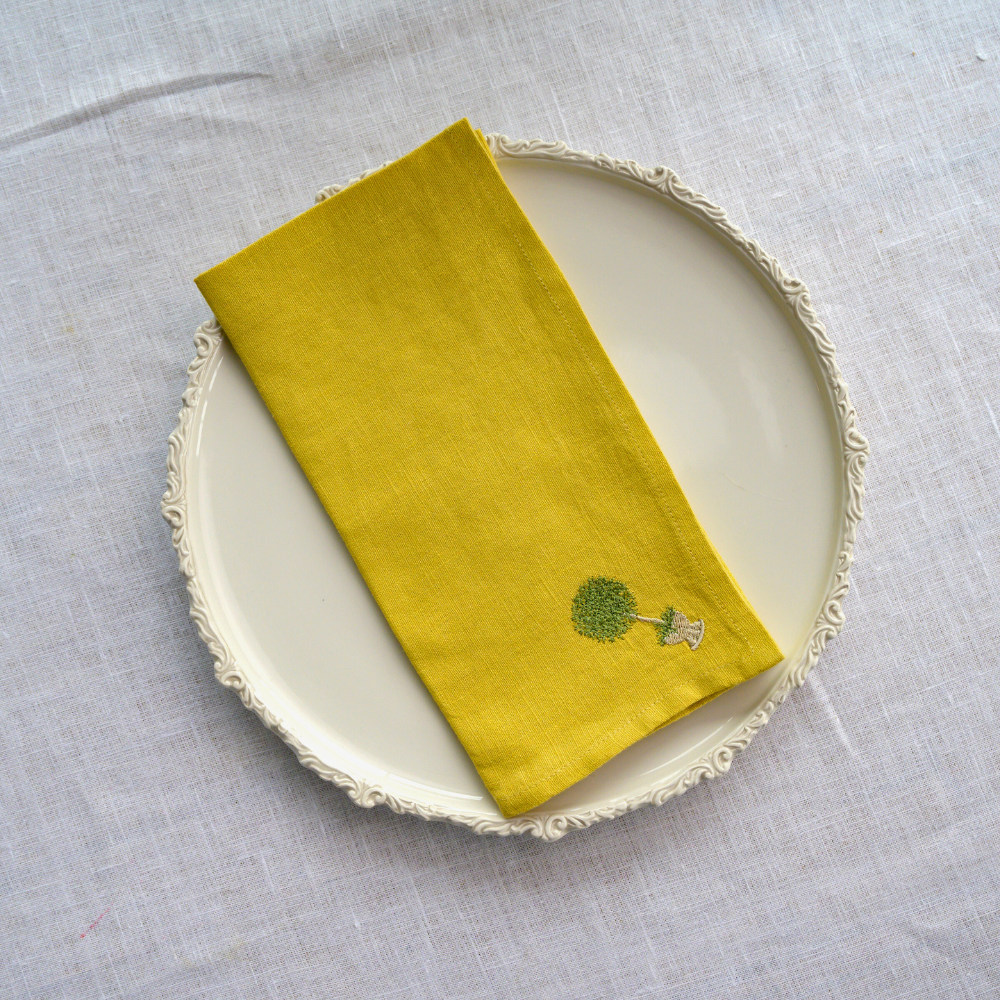 Set of 4 linen napkins embroidered with our herb topiary design.