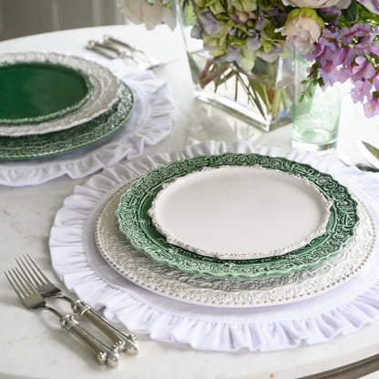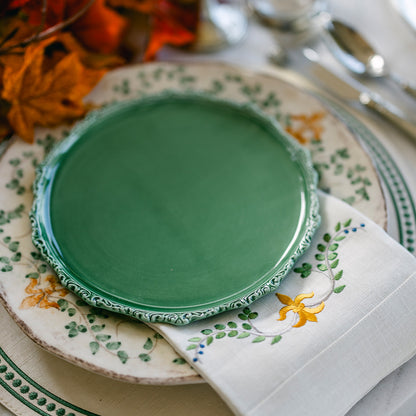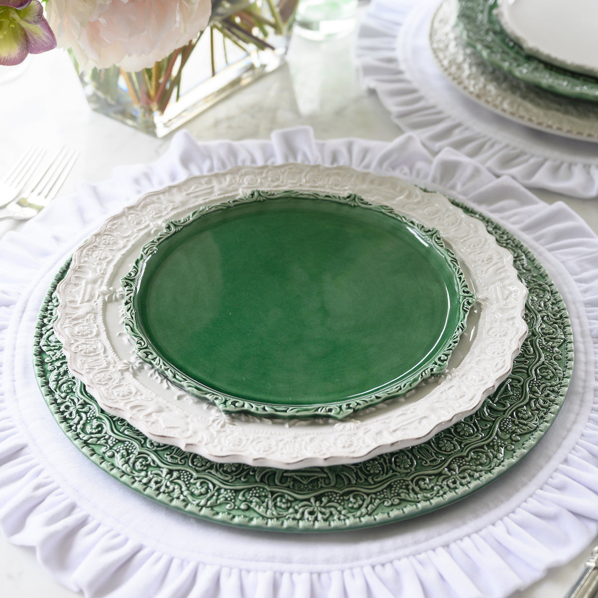 Fabriquée à la main en Italie, chaque assiette présente des détails complexes dans un vert ou un blanc italien vibrant. Servez avec élégance et style, dégustez des salades, des desserts et bien plus encore !