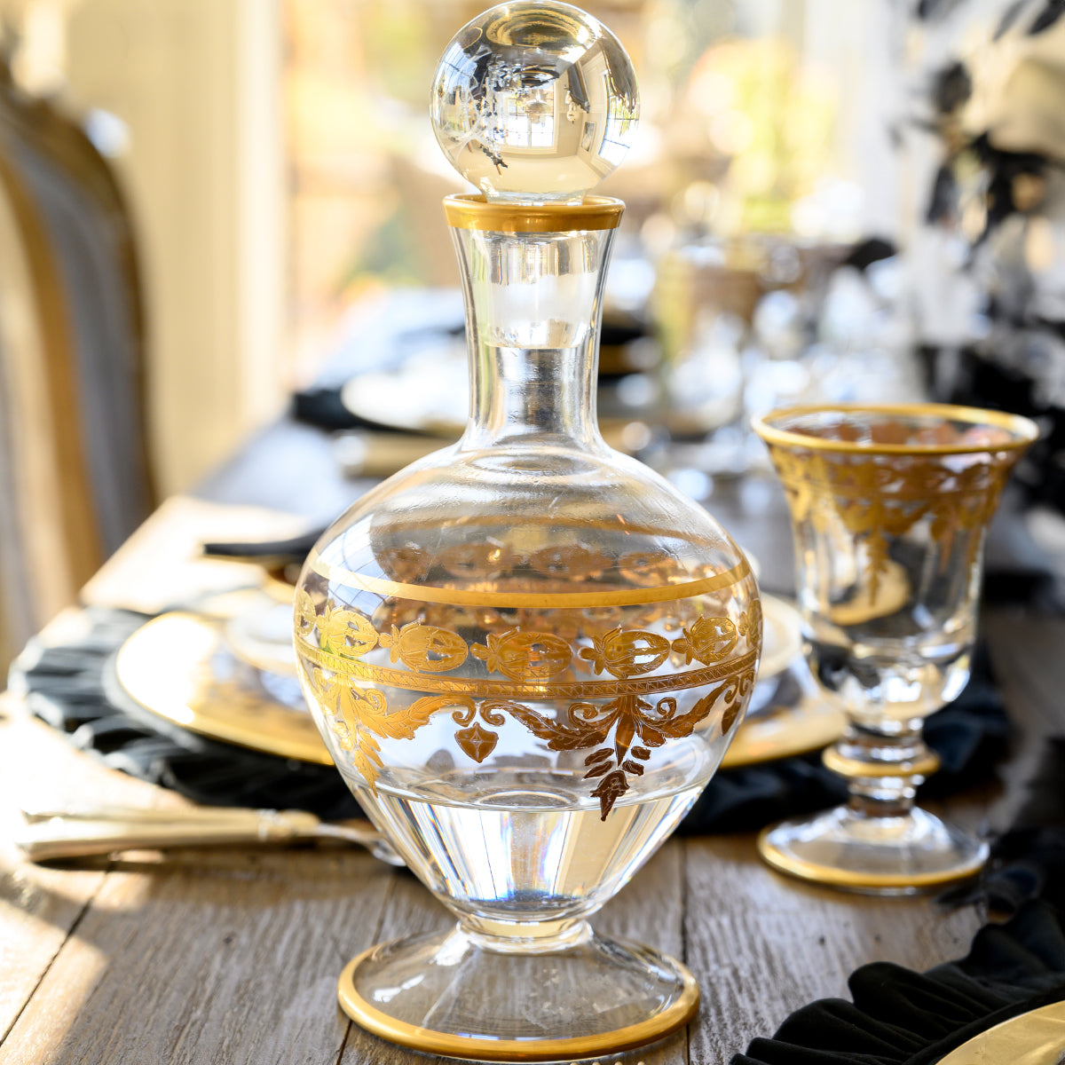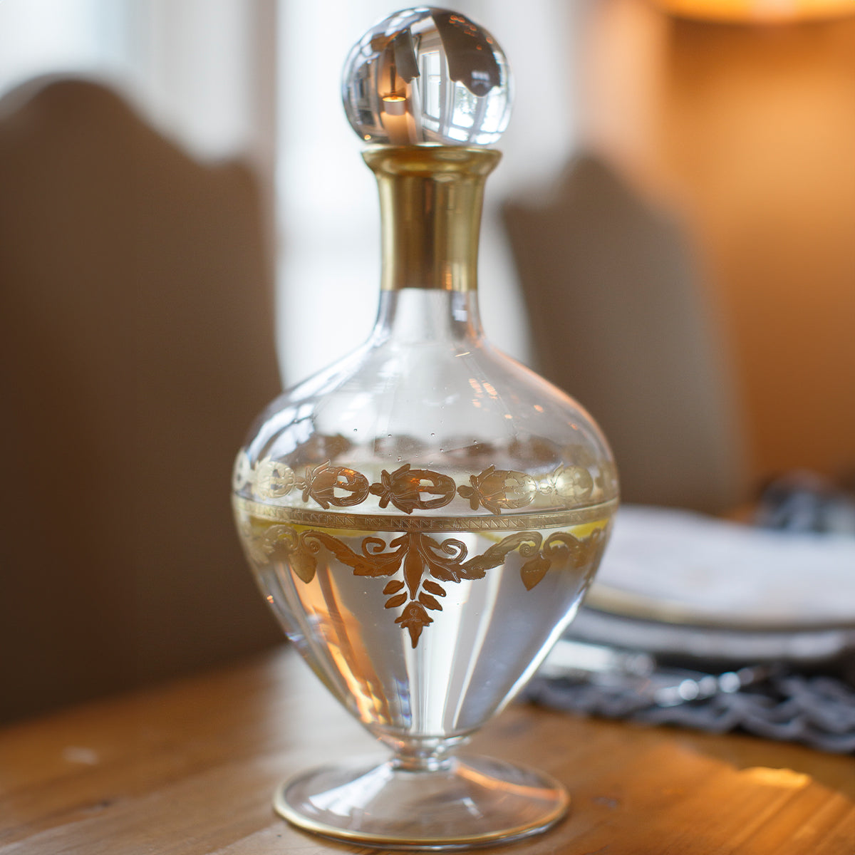 Les artisans en dehors de Florence combinent magnifiquement des matériaux luxueux, des détails complexes et des touches subtiles. Cette pièce est gravée à la main et peinte avec des rehauts d'or 24 carats. Verre italien, fabriqué à la main en Italie.