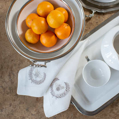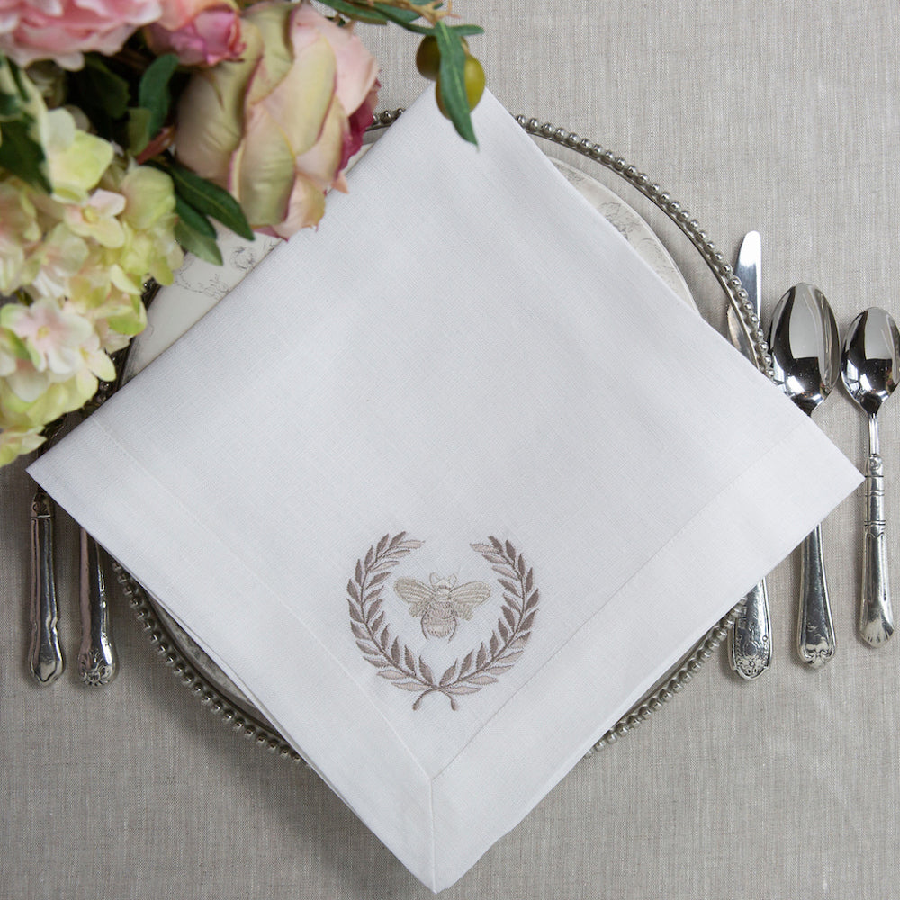Add timeless elegance to your table with this beautiful 100% European linen napkin with our popular Bumble Bee embroidery. Embroidery colors are designed to complement our favorite tabletop collections, this napkin adds beauty to any part of your home.