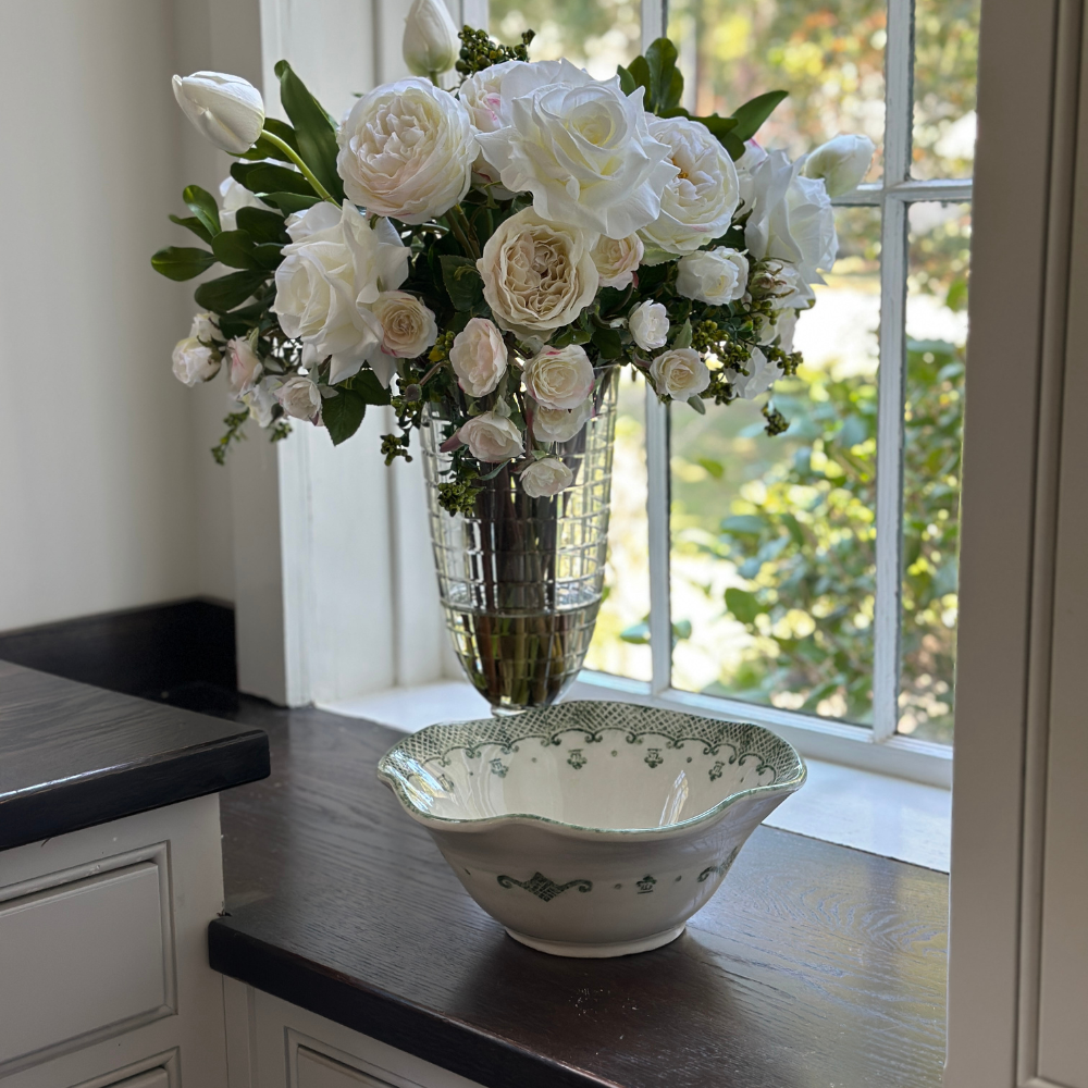 Our Burano Large Serving bowl is one of the collections top sellers, now available in Green! Beautiful and sized perfectly for almost any sharing dish. Hand made in the Umbria region of Italy.