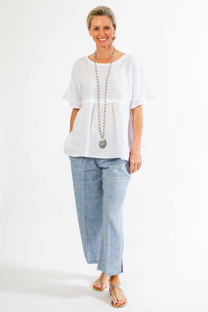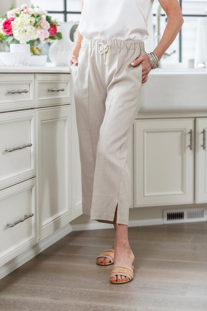 A classic styled, wide-leg capri pant with side pockets and a drawstring waist. Linen is the perfect heat regulator for warm days and an elegant fabric for all occasions.
