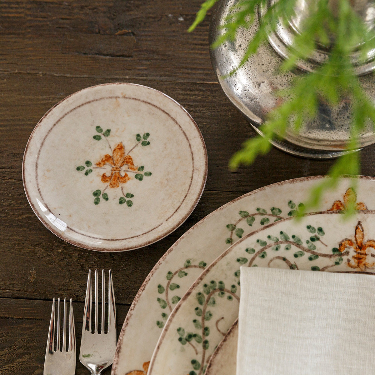 Before the Renaissance (Rinascimento in Italian), there were the Medicis, the dynastic Italian banking family that financed so many of the period’s transformational achievements. It is a fitting name for this popular collection that has been part of Arte Italica for decades. Its shapes and subtle colors create an old world feel. Unmistakably handmade and hand painted in soft cream shades accented with an interpretation of the Medici's beautiful, signature, giglio (fleur-de-lis) and vine motifs in rich hues of green, blue and orange. Italian ceramic, Hand made in the Umbria Region of Italy.