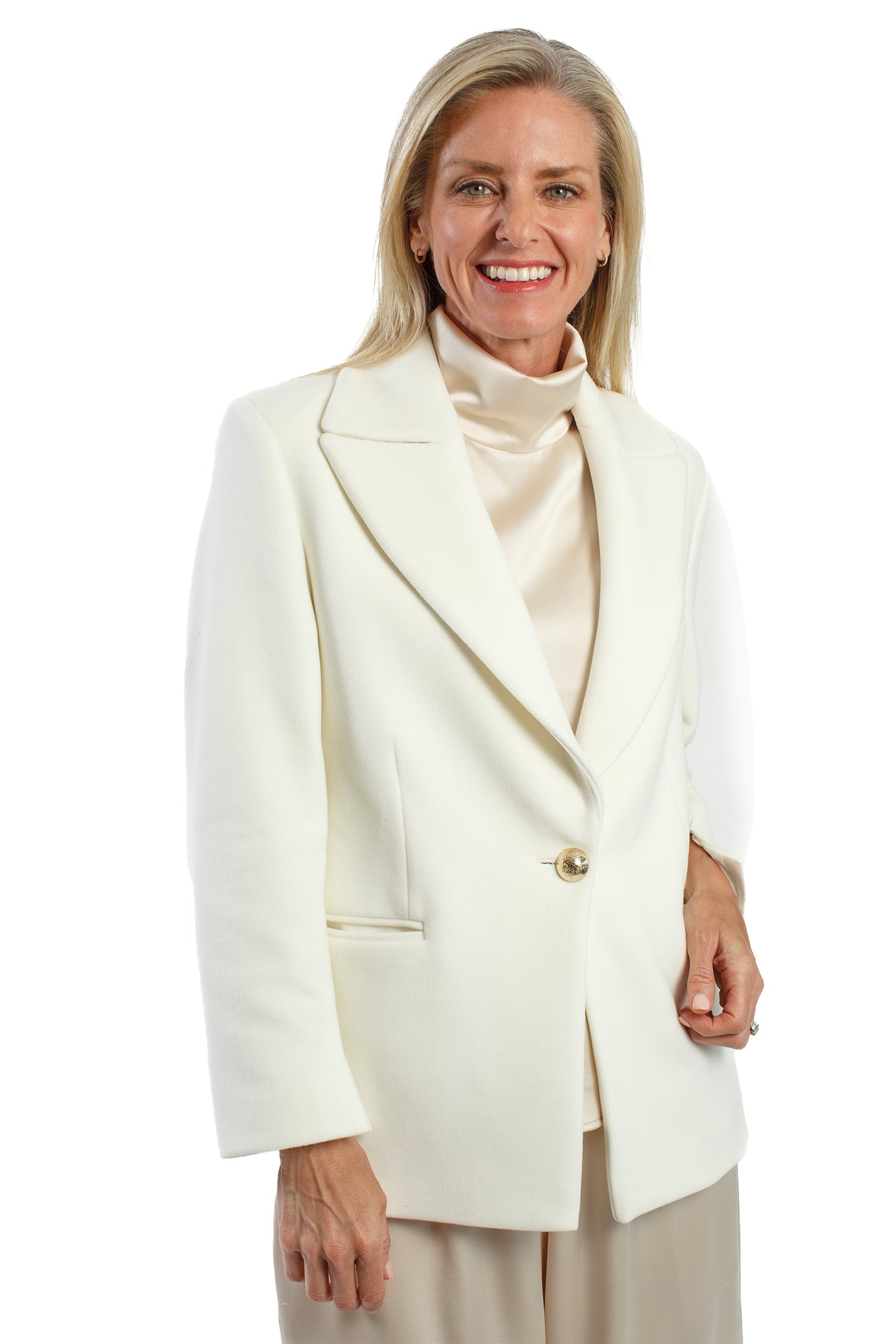 The Morgan Blazer will give any outfit an air of luxury. Crafted from a high-quality ivory wool viscose blend, this fully lined blazer strikes the perfect balance between fashion and comfort. Its timeless silhouette will make you stand out in any crowd, while its superior craftsmanship ensures that you will enjoy wearing it for years to come. Elevate your wardrobe to the next level with the Morgan Blazer!