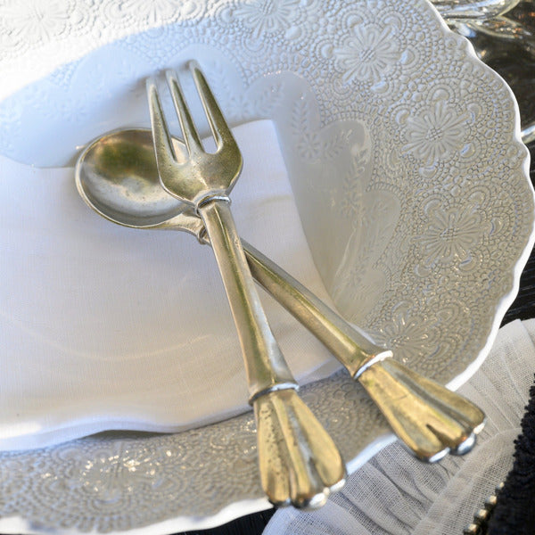 Our Peltro Salad Servers with Pouch are pieces you will use every day - and why not? Whether it's a summer picnic or special dinner with family and friends these exceptional pieces create a special touch that guests will both see and feel!