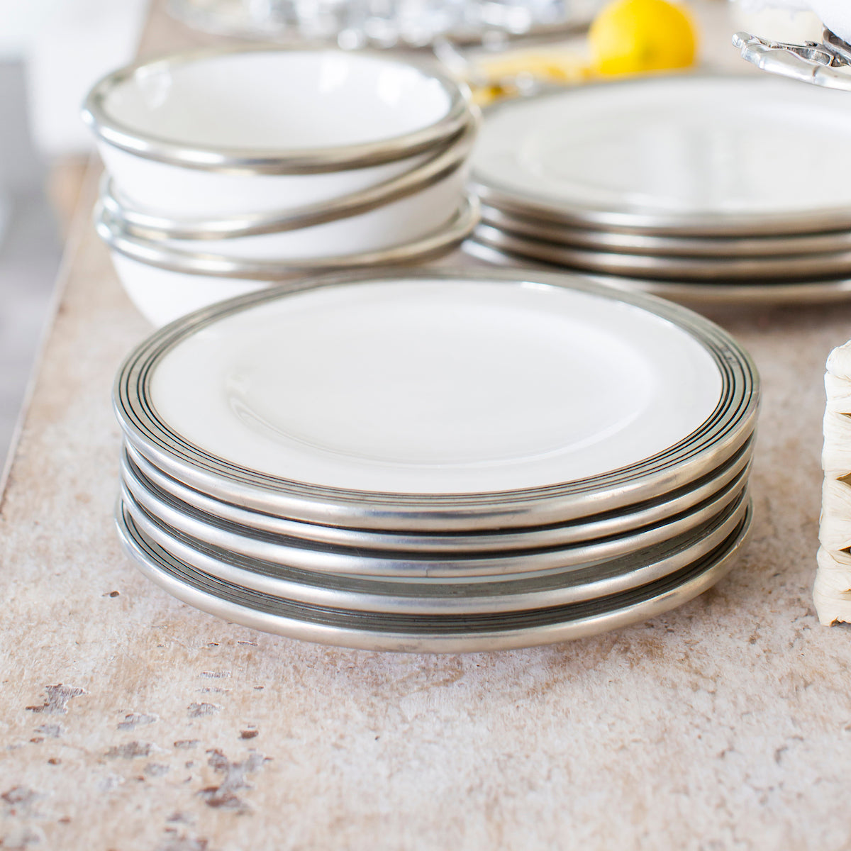 Arte Italica was the first tabletop line in the United States to combine ceramic and pewter when we introduced our Tuscan Collection nearly 30 years ago. It continues to be highly coveted by customers for its elegant, distinctive and authentic look. The patina of the hand rubbed pewter against the beautiful bianco white ceramic creates a look (and feel) like none other. Both classic and contemporary, it is truly timeless; and a collection that can be treasured for generations.