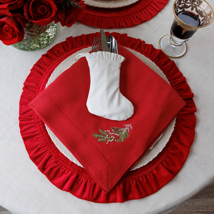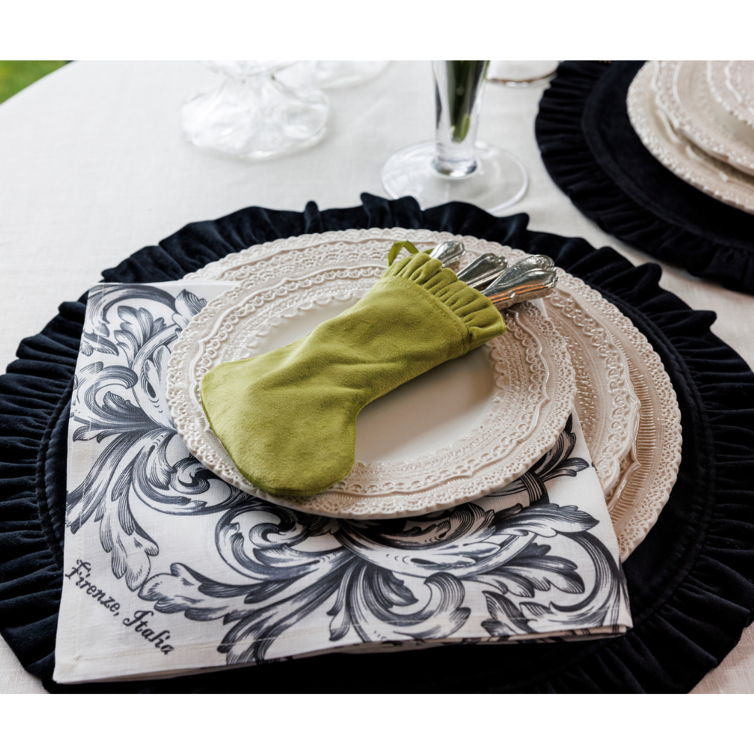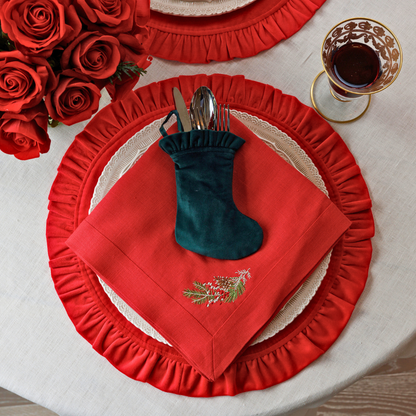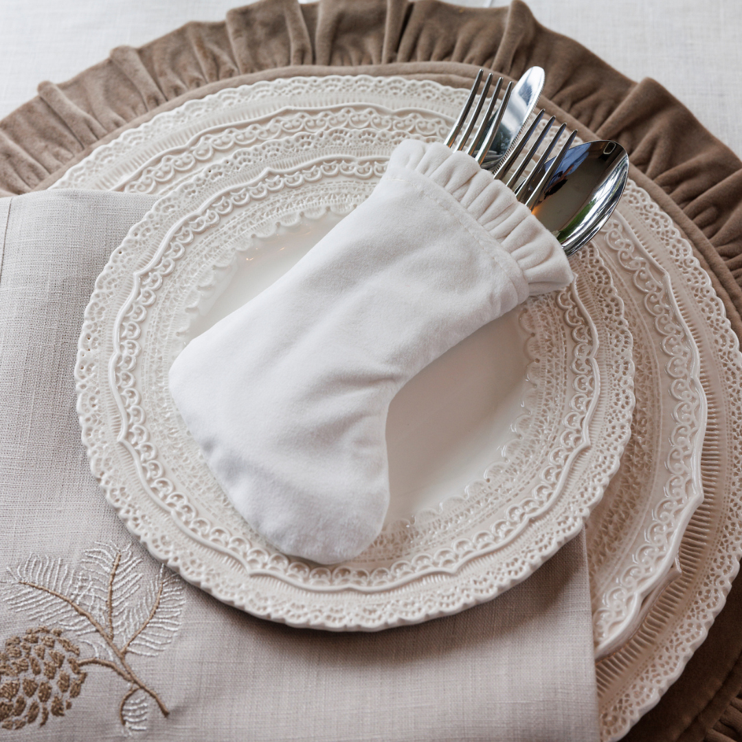 Discover the Velvet Mini Stocking! This opulent velvet piece brings a warm and fashionable flair to your holiday decorations. Utilize the convenient tab to display it or transform it into a unique utensil holder – the possibilities are limitless. Offered in four colors, the Velvet Mini Stocking promises to become a cherished holiday highlight!