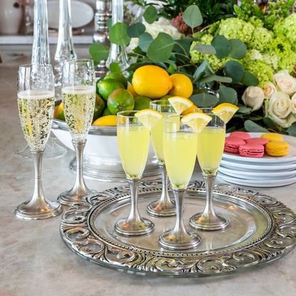 Shakespeare may not have been referring to our Verona Collection but so many of our customers share his sentiment. Graceful forms of glittering glass stand atop handcrafted pewter stems. True vintage heirloom pieces that will carry memories across generations. Italian pewter and glass; hand made near Verona in the Lombardy Region of Italy.